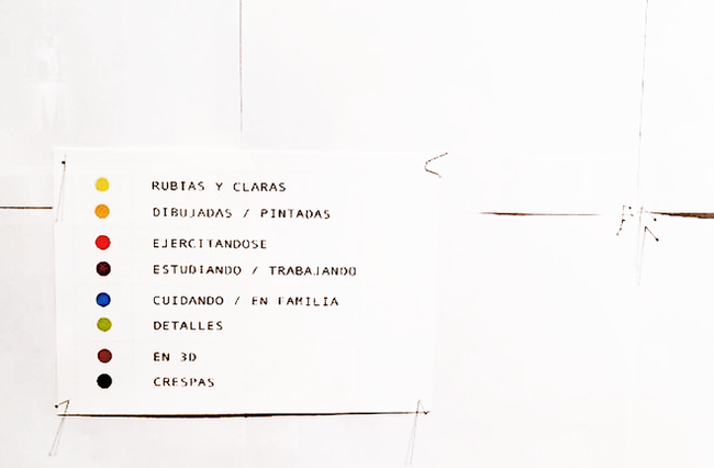 Se fotografiaron todas las imágenes de mujeres en las avenidas señaladas y se hizo una selección representativa para el mapa según las siguientes categorias; Rubias / Claras, Pintadas / dibujadas, Ejercitándose, Estudiando / trabajando, Cuidando / en familia, Detalles, 3D y Crespas.